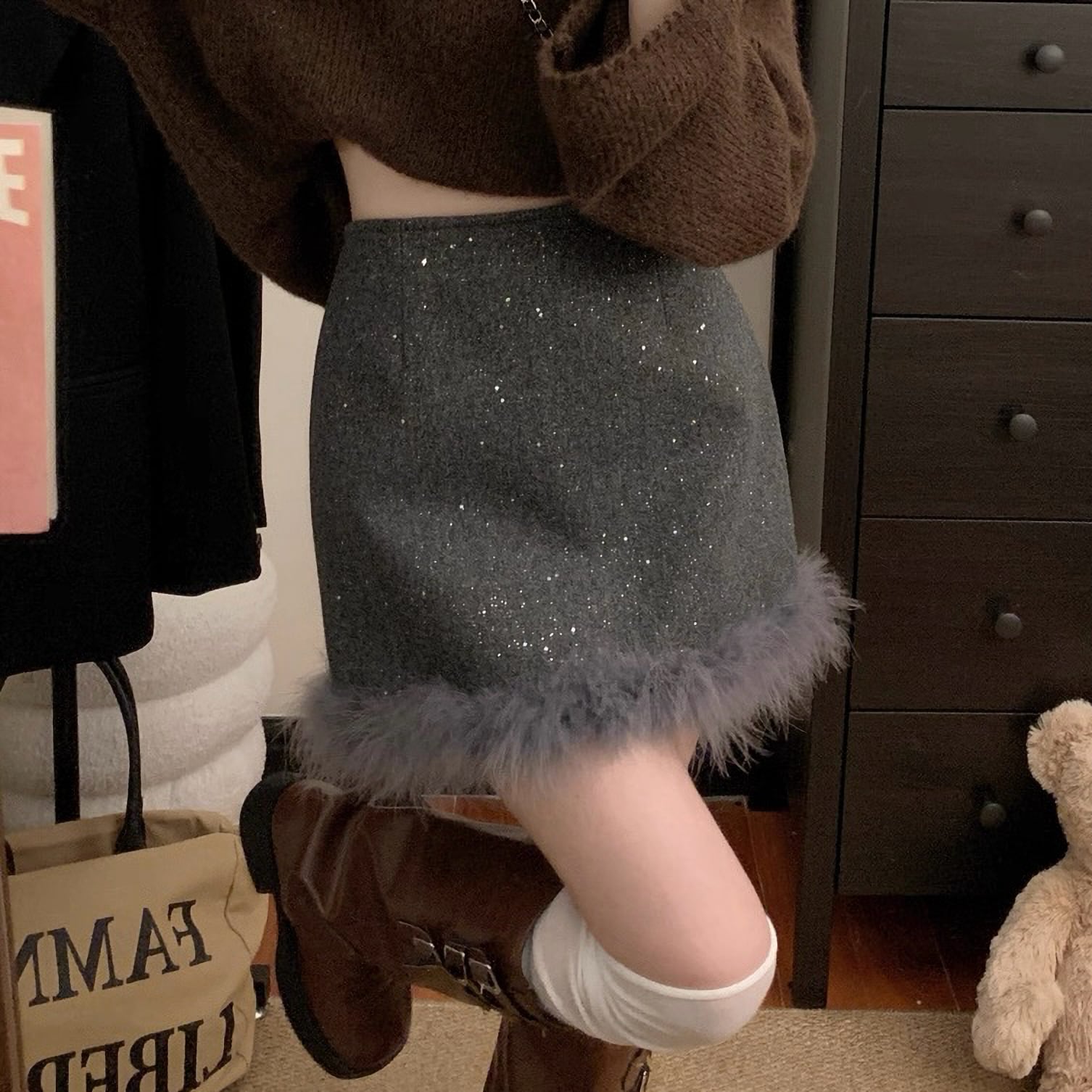 セクシー 台形 秋 冬 ファー ふわふわ もこもこ 裾