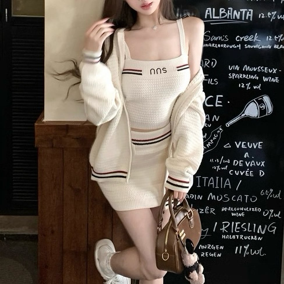 ミニ ミニ丈 ショート丈 上品 セクシー 3点セット 長袖 タイト ハイウエスト スカート カーディガン