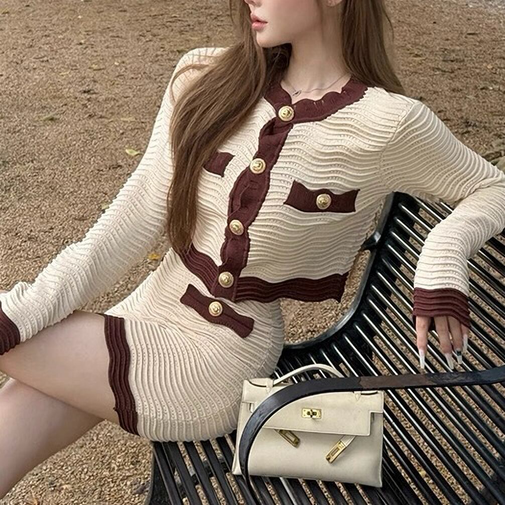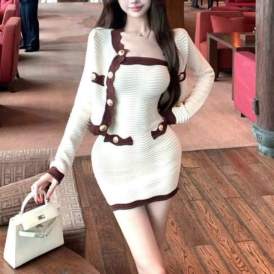 ミニ ミニ丈 ショート丈 上品 セクシー 3点セット 長袖 タイト カーディガン インナー バイカラー
