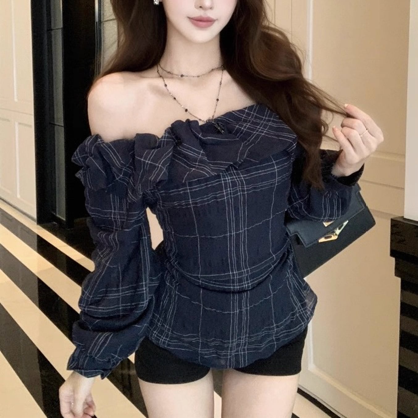 トップス 上品 韓国 量産型 地雷系 秋 春 チェック柄