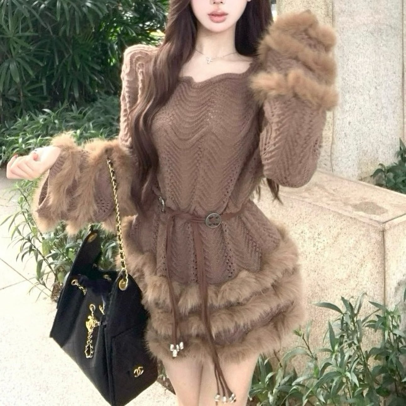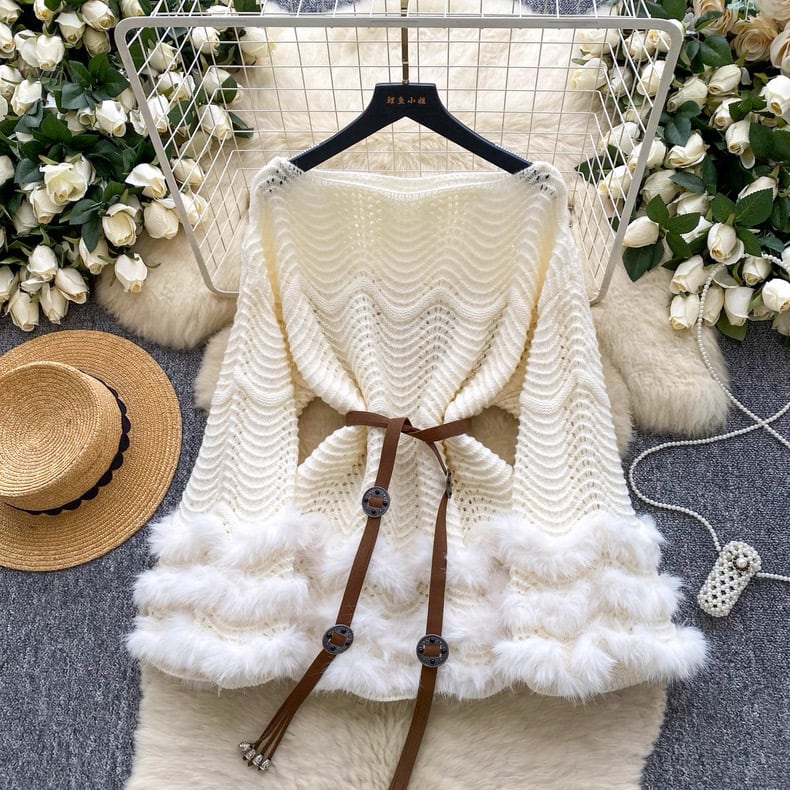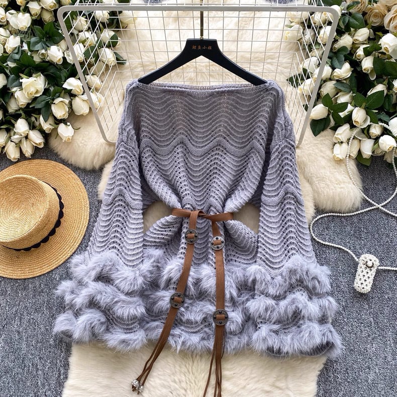 ベルト ファー ふわふわ もこもこ ゆるニット
