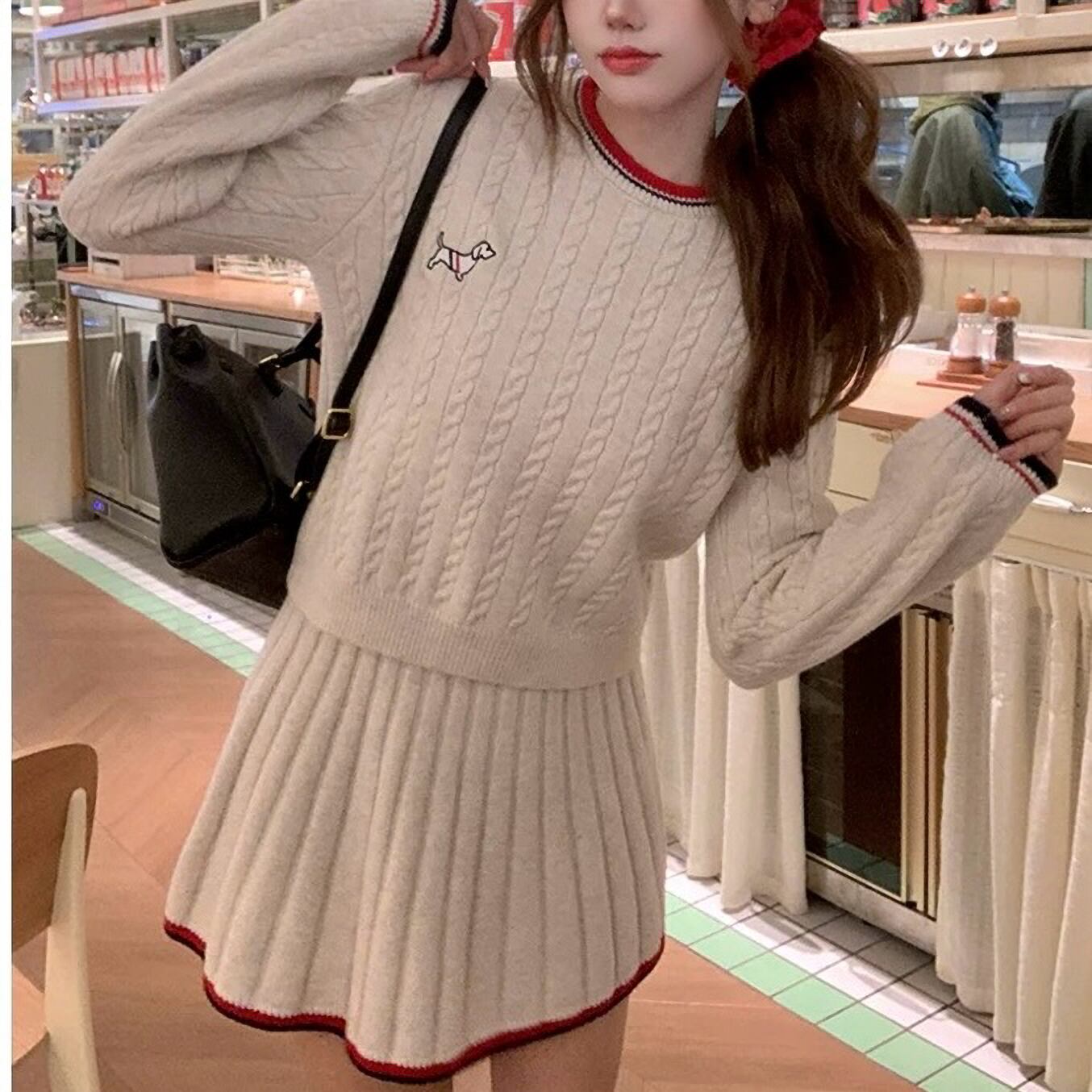 3色 Dog onepoint knit set up