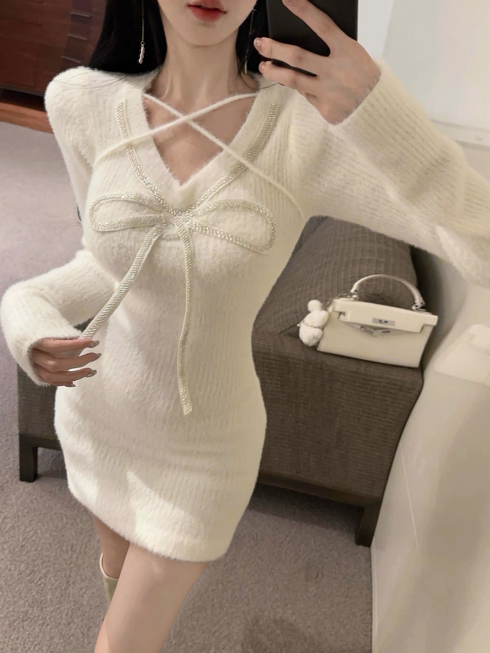 モヘア ふわふわ シャギー ファー キラキラ