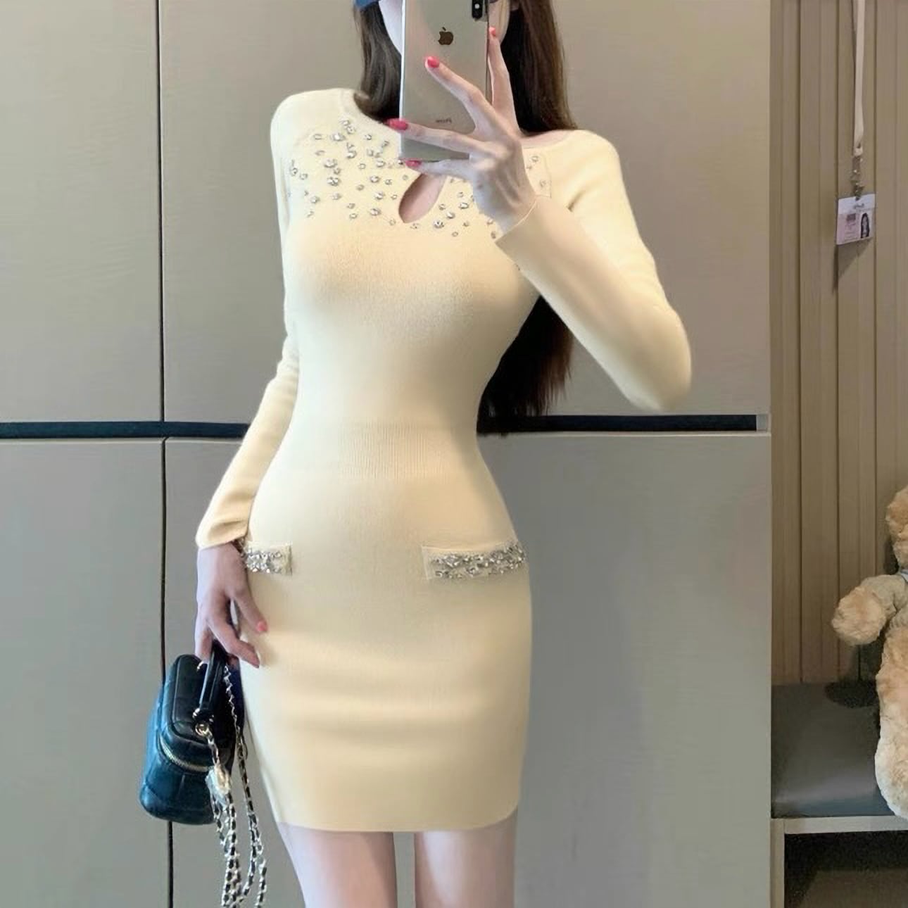 ミニ丈 ガーリー 可愛い 長袖 秋 冬 ビジュー
