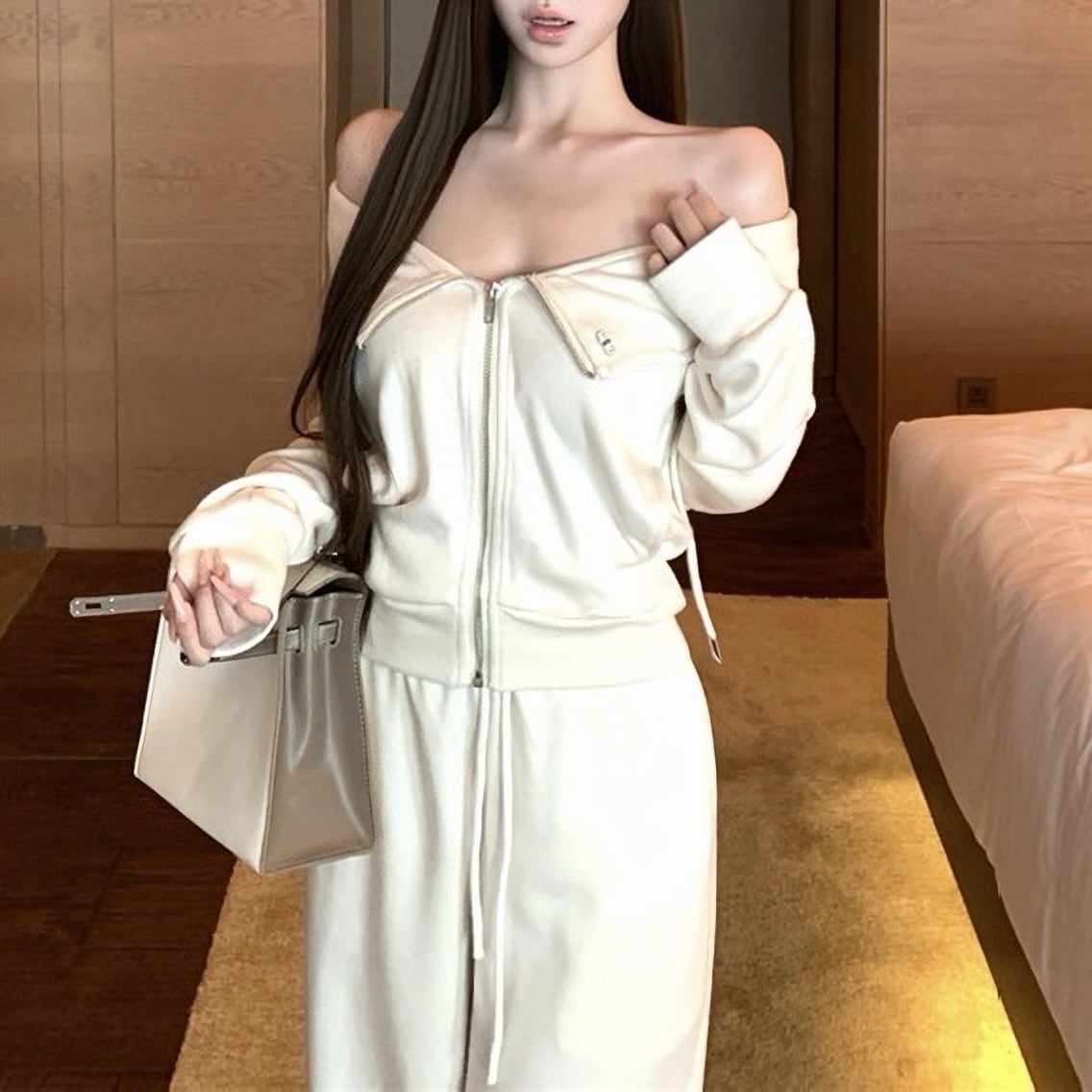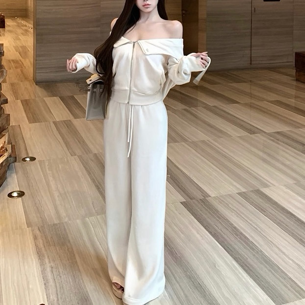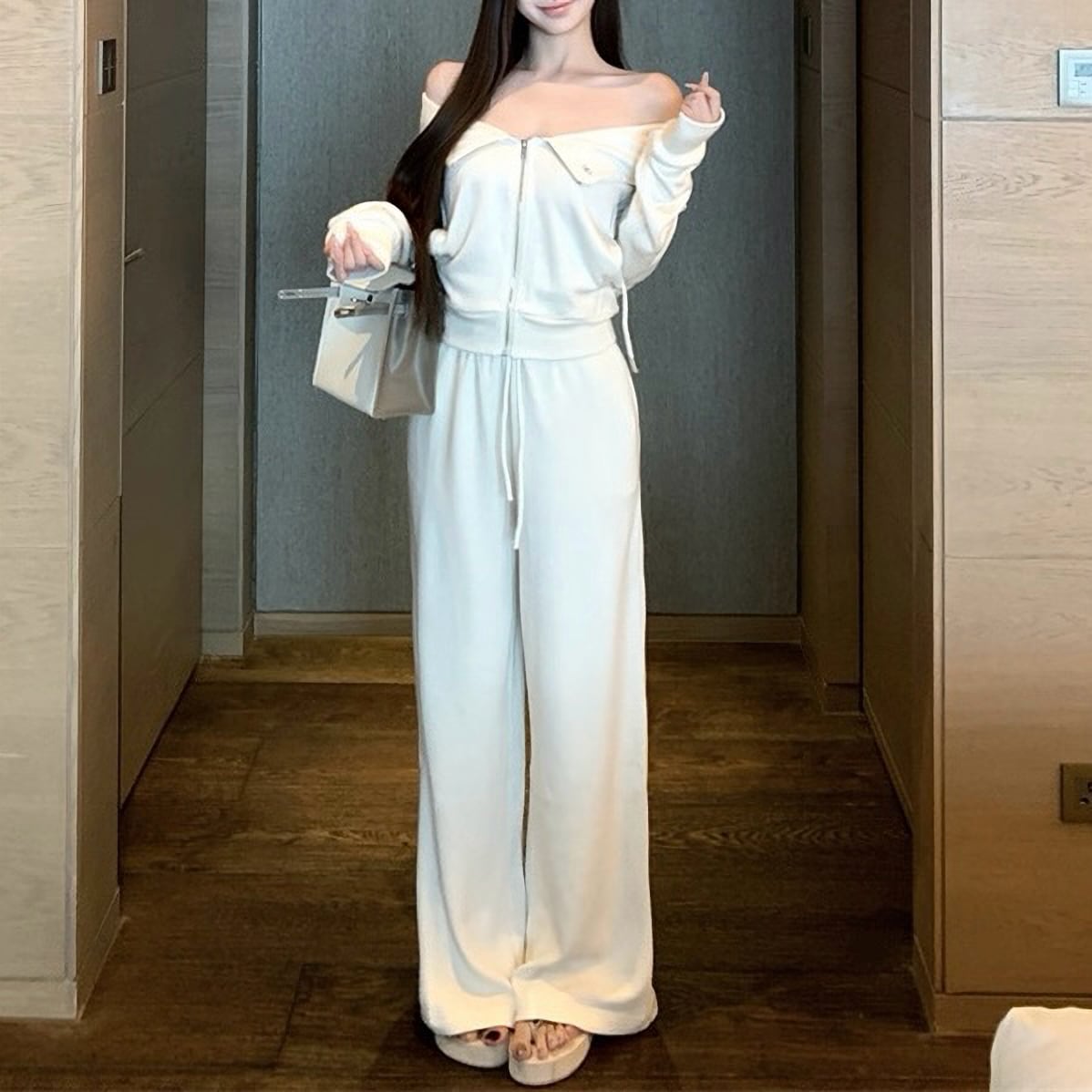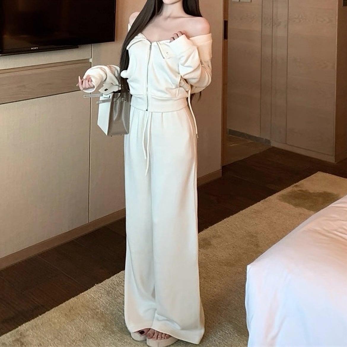 Off shoulder white jersey set up
