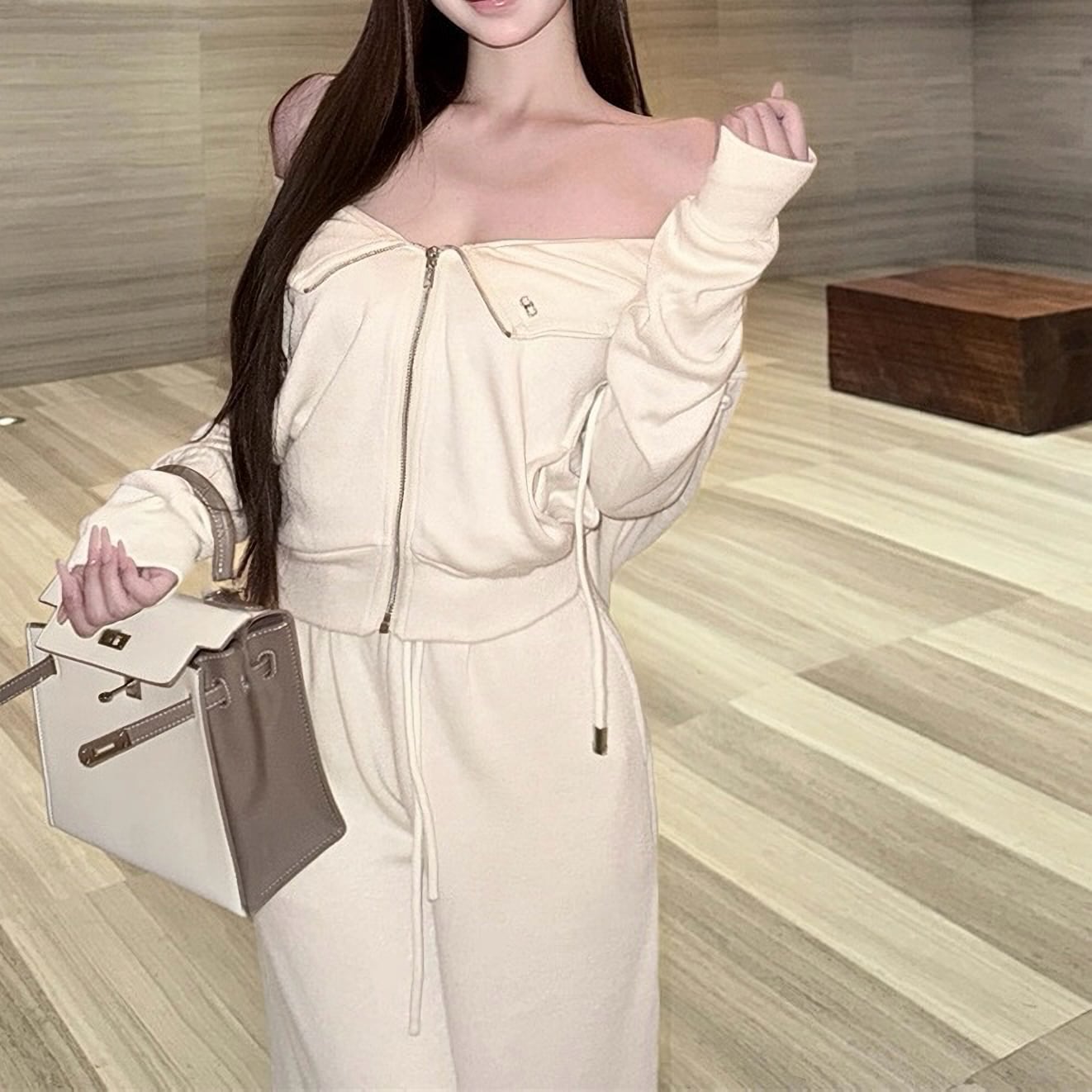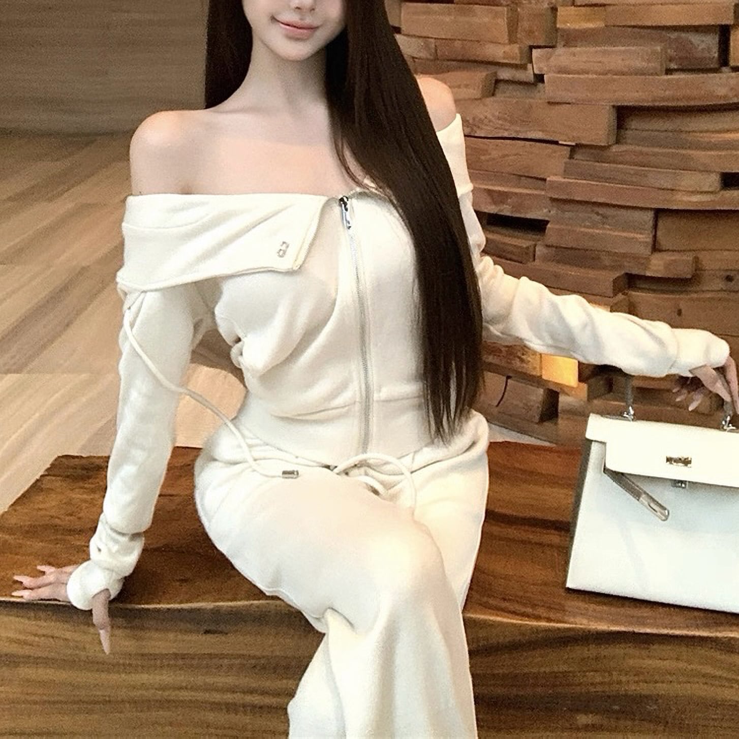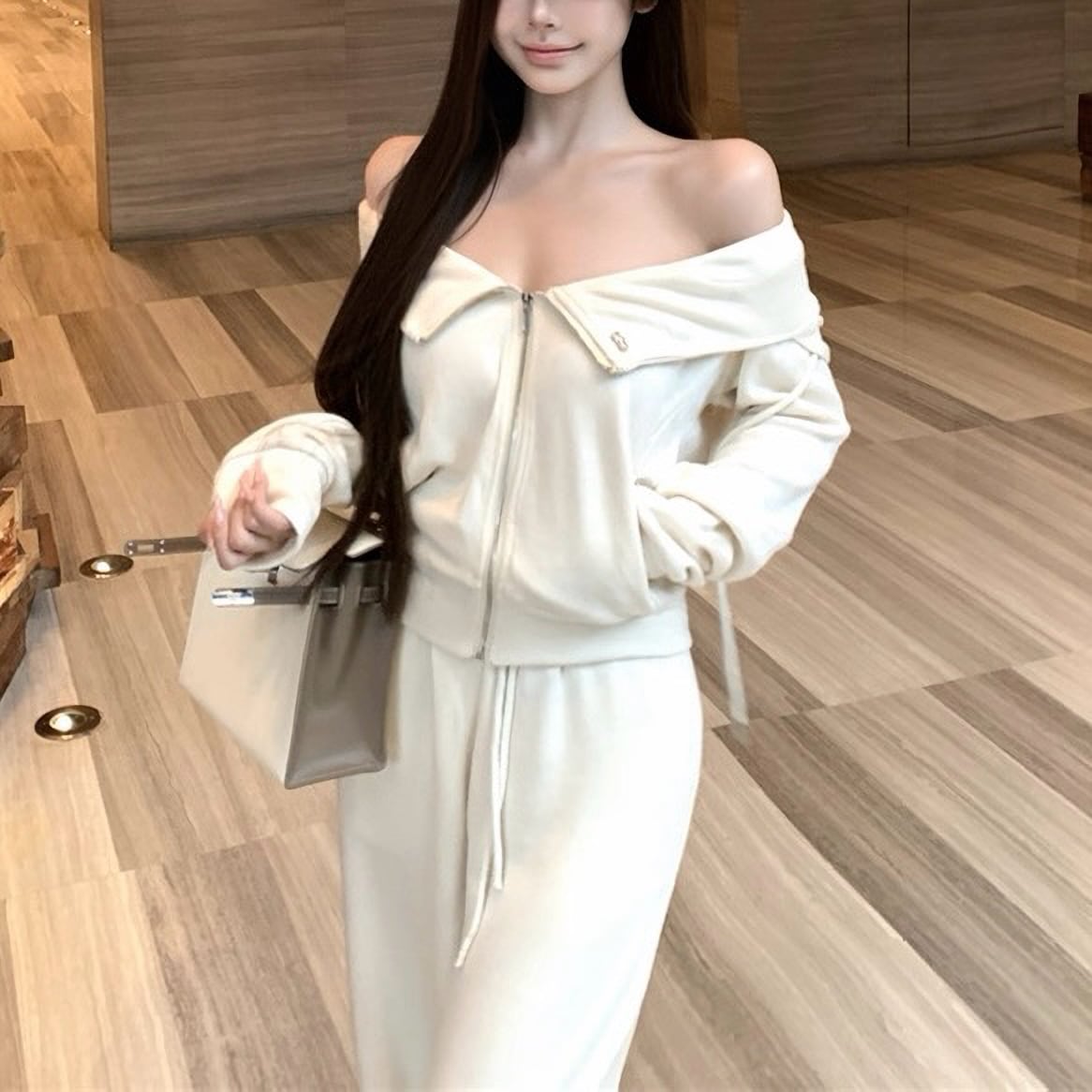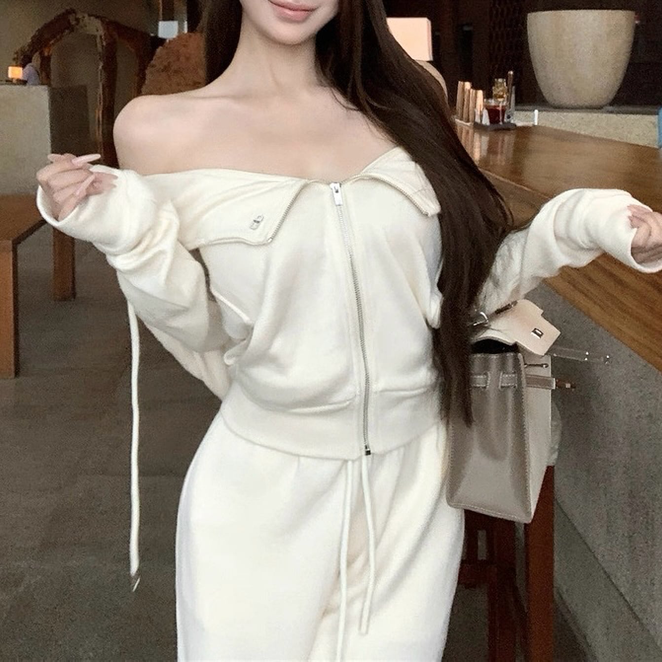 Off shoulder white jersey set up
