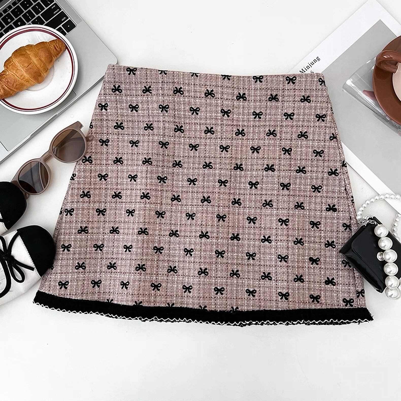 2色 Ribbon pattern tweed skirt