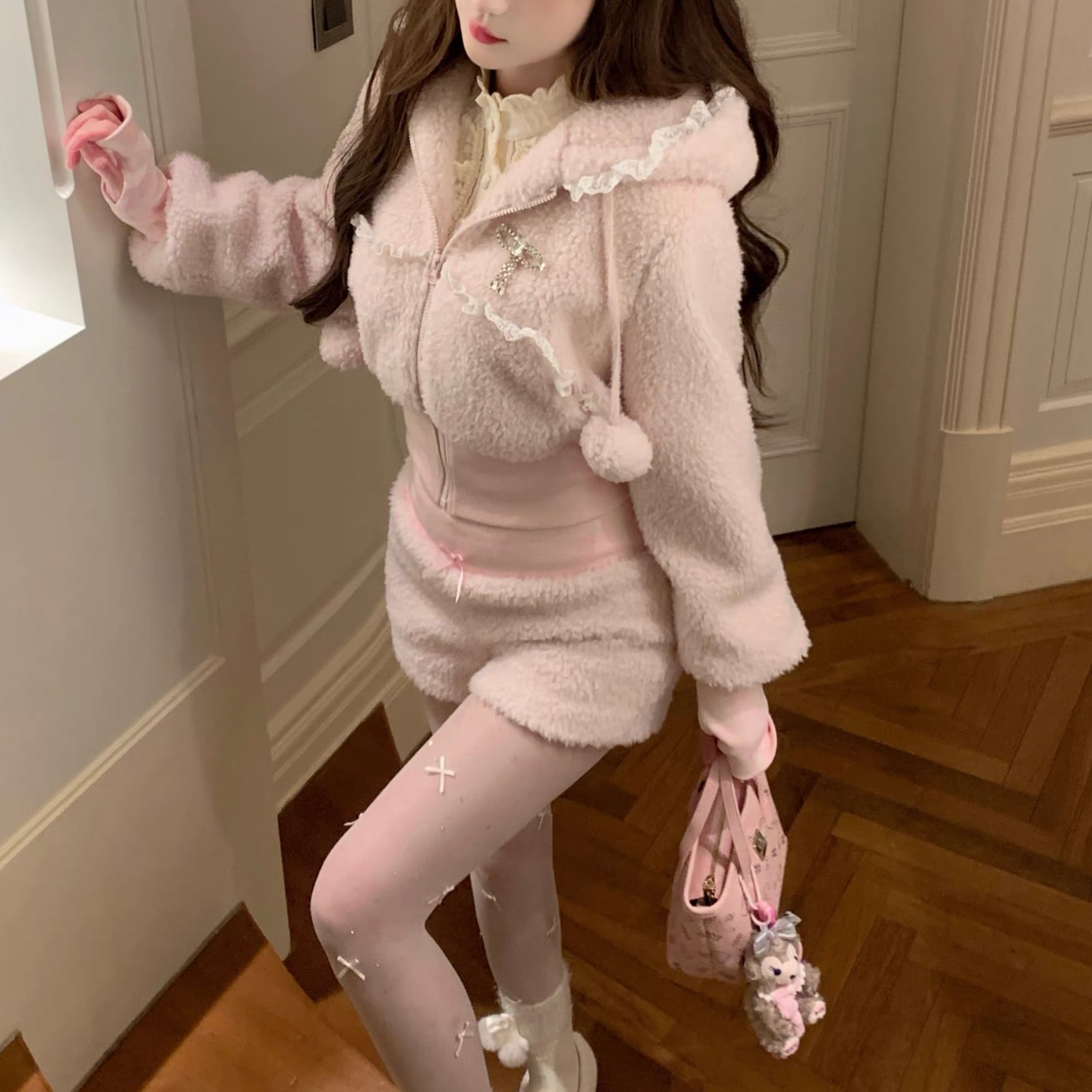 ミニ ミニ丈 ショート丈 上品 セクシー 2点セット 長袖 冬 パーカー ふわふわ もこもこ ファー