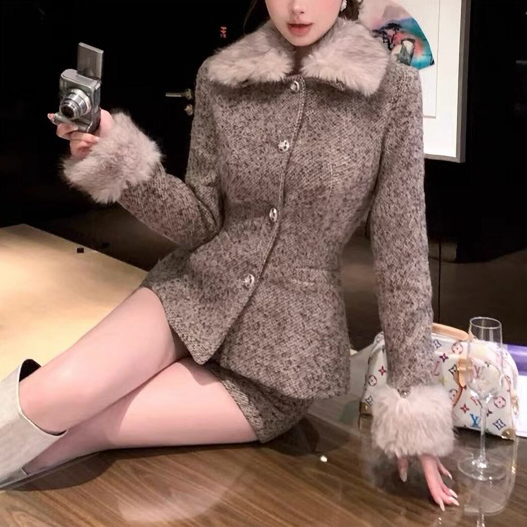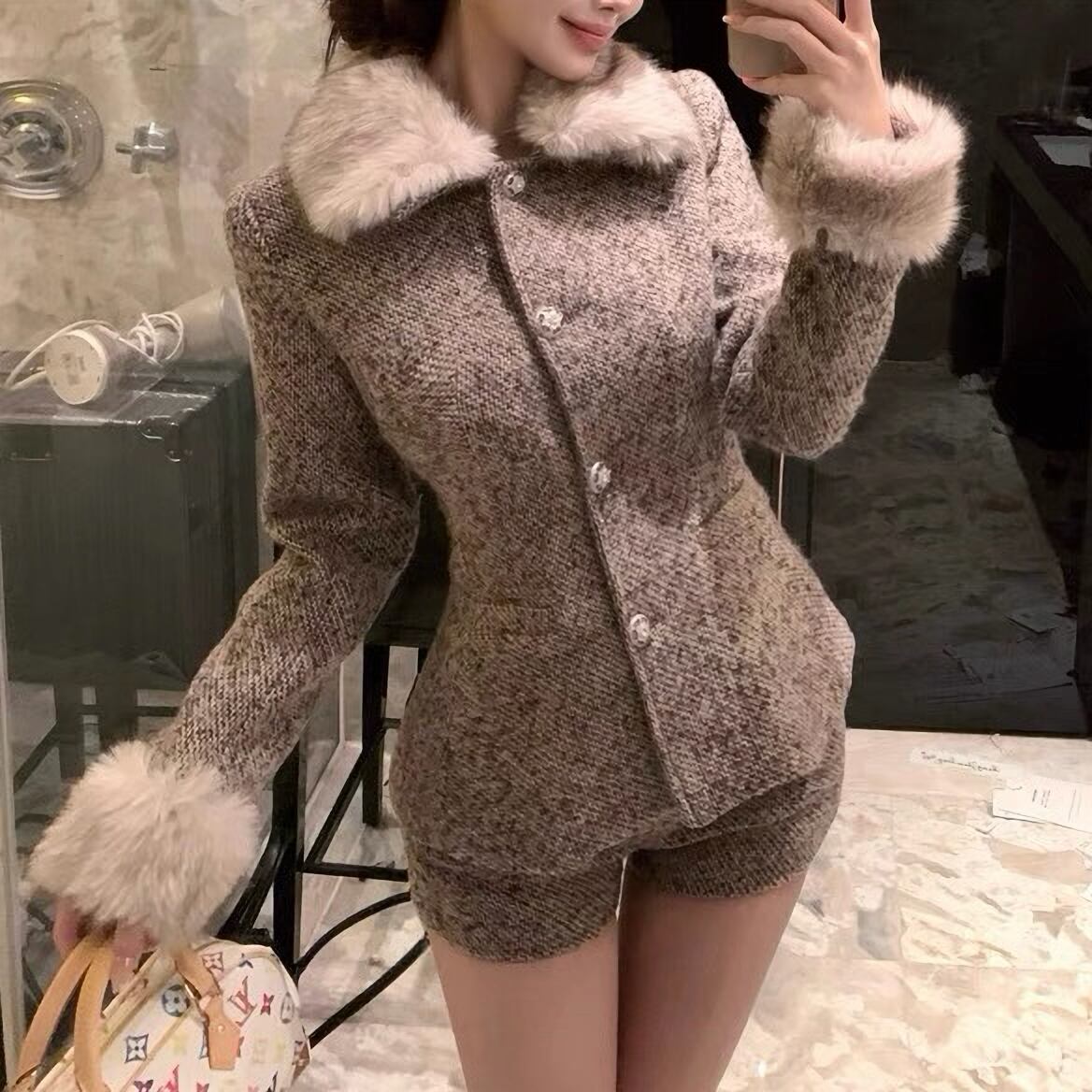 ミニ ミニ丈 ショート丈 上品 セクシー 2点セット 長袖 冬 コート ジャケット ファー ふわふわ