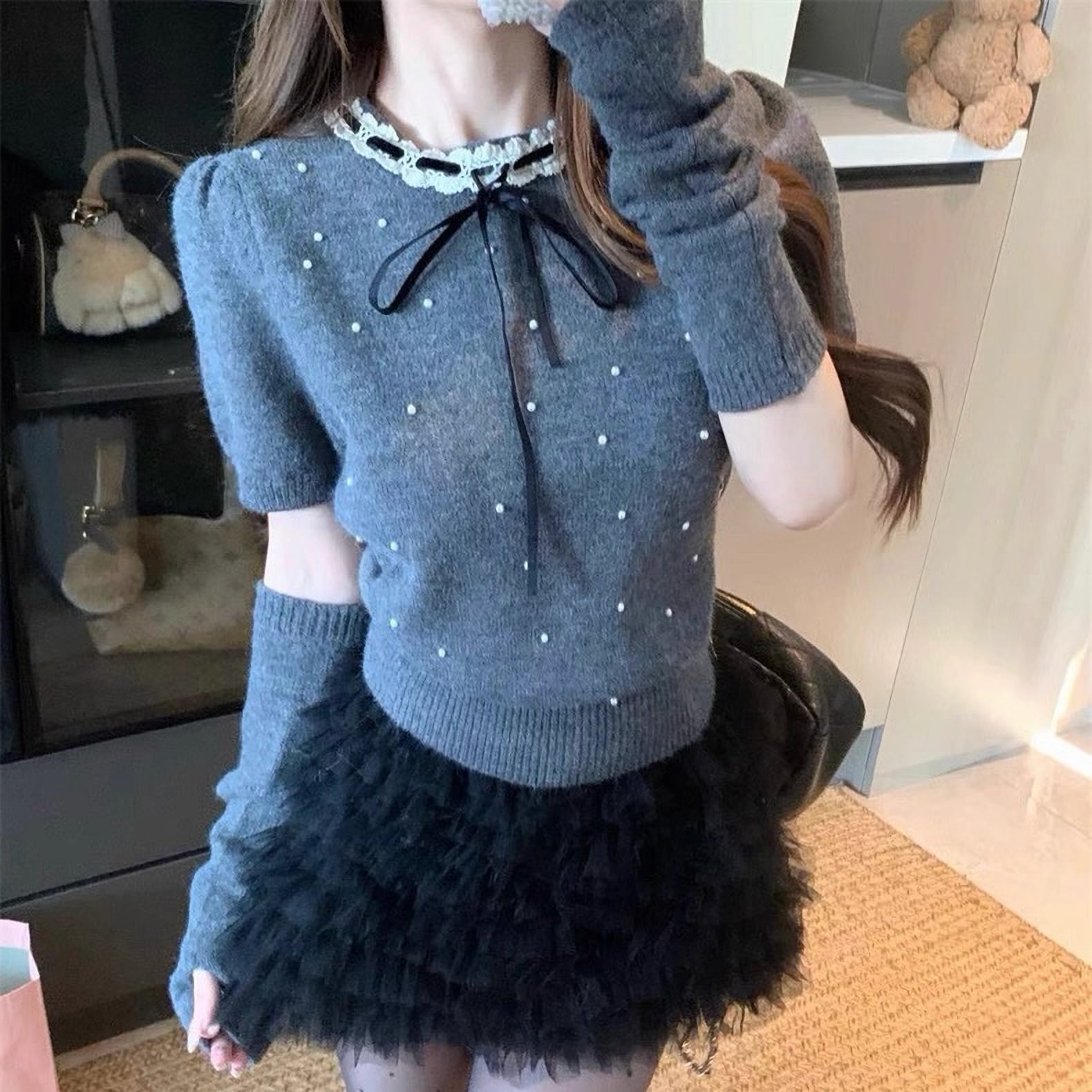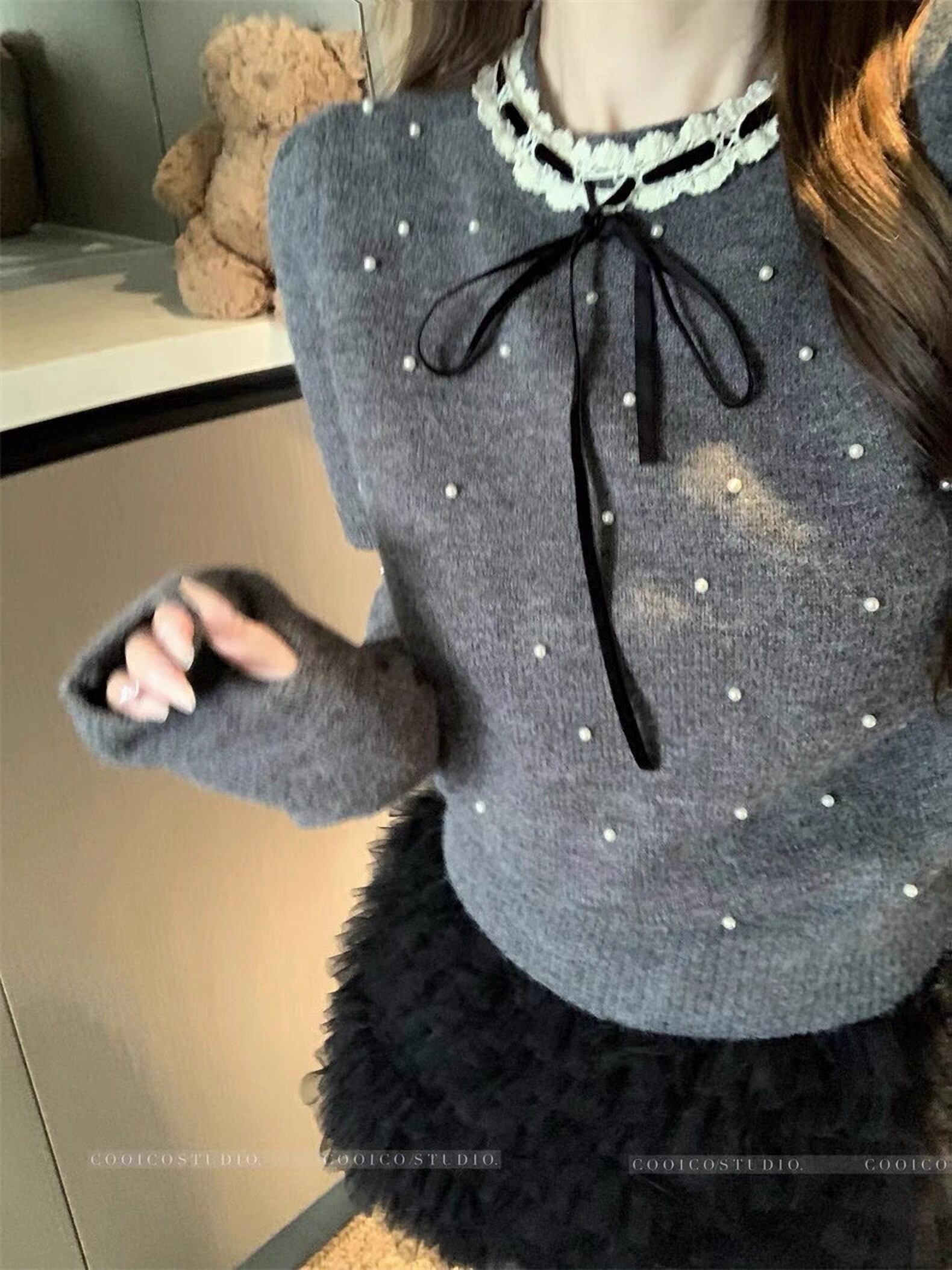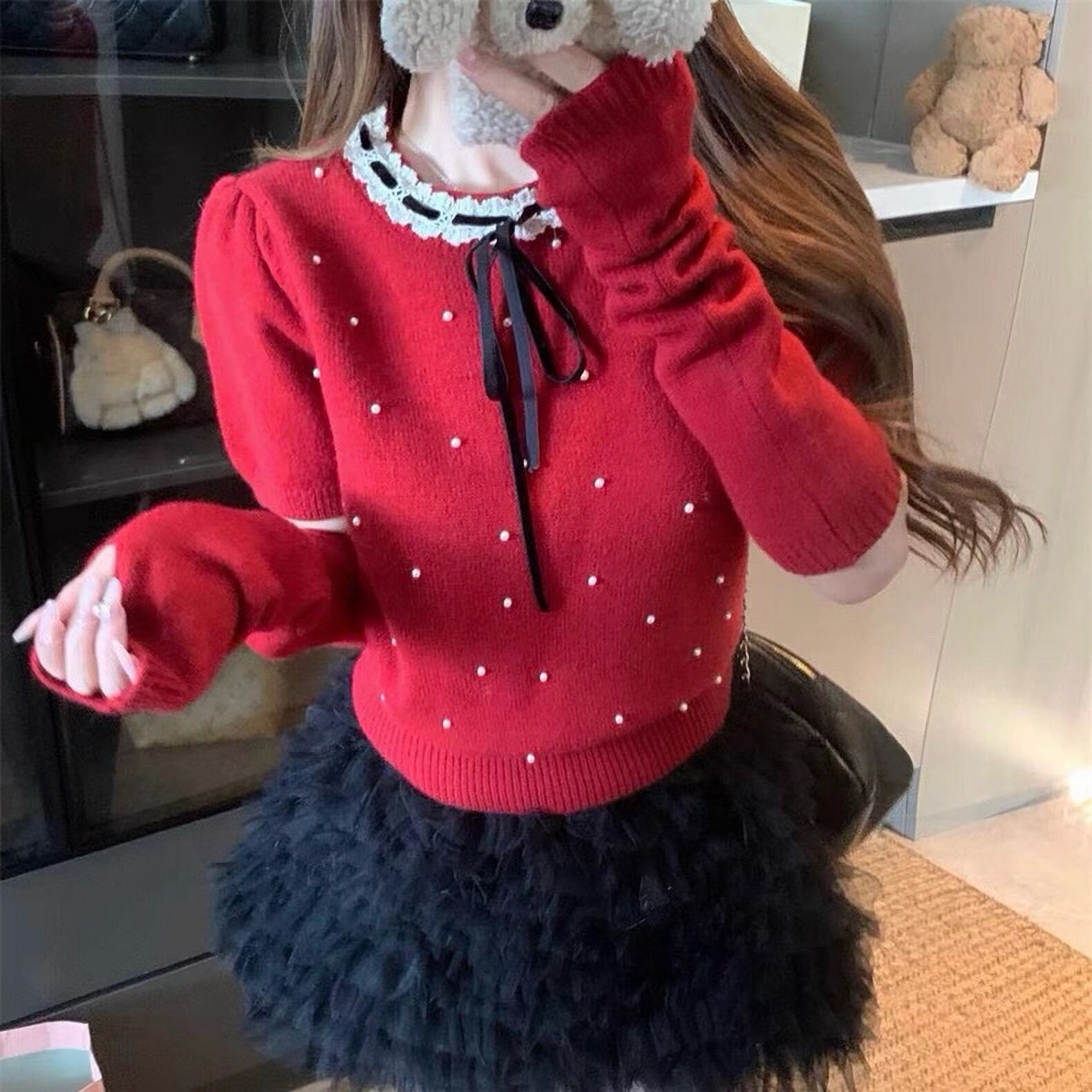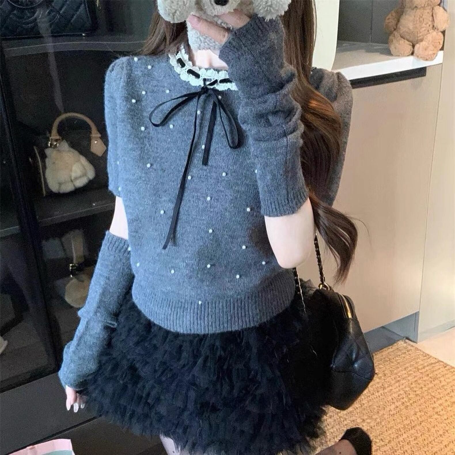 韓国ファッション ニット セーター 真珠