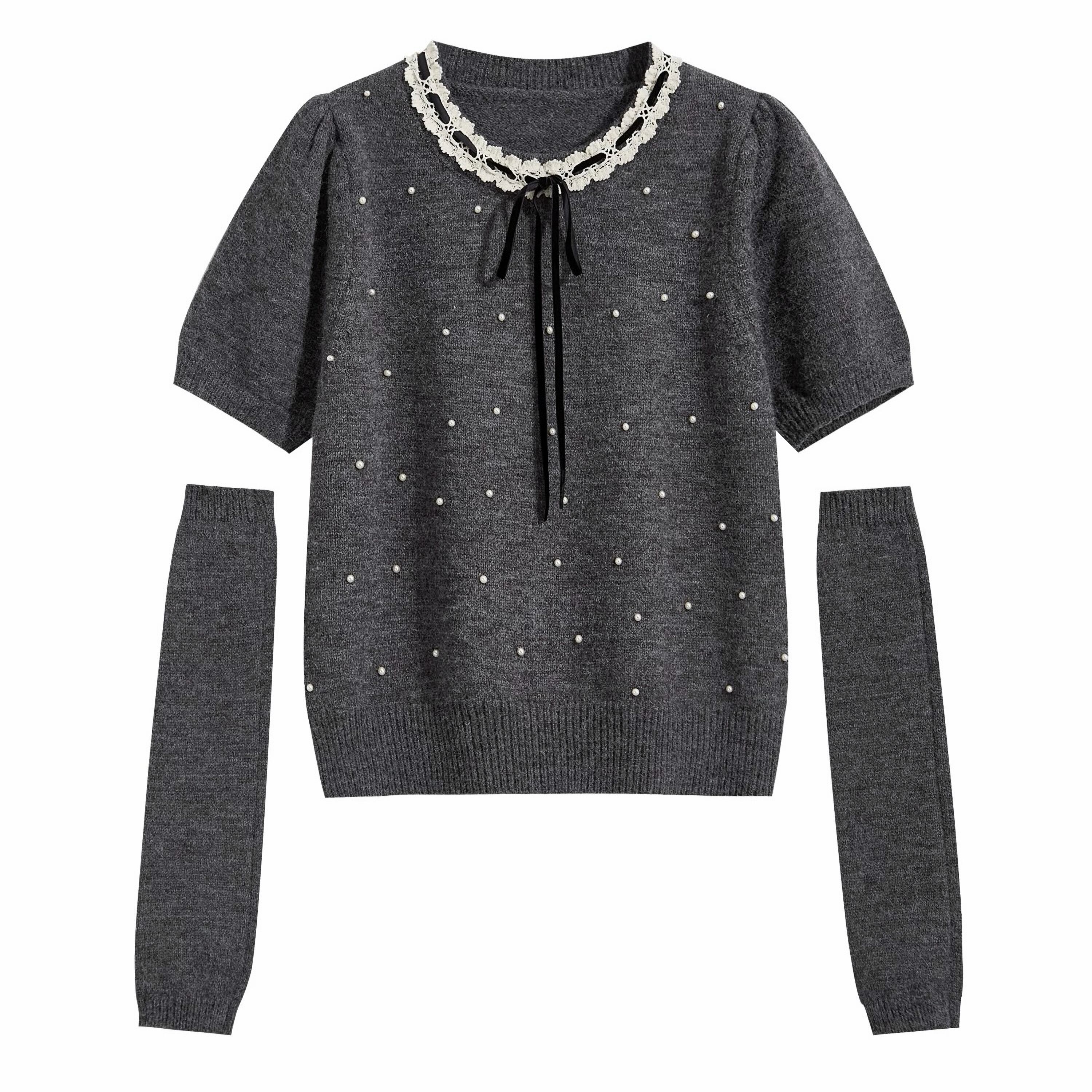 2色 アームカバー付きパールニット
