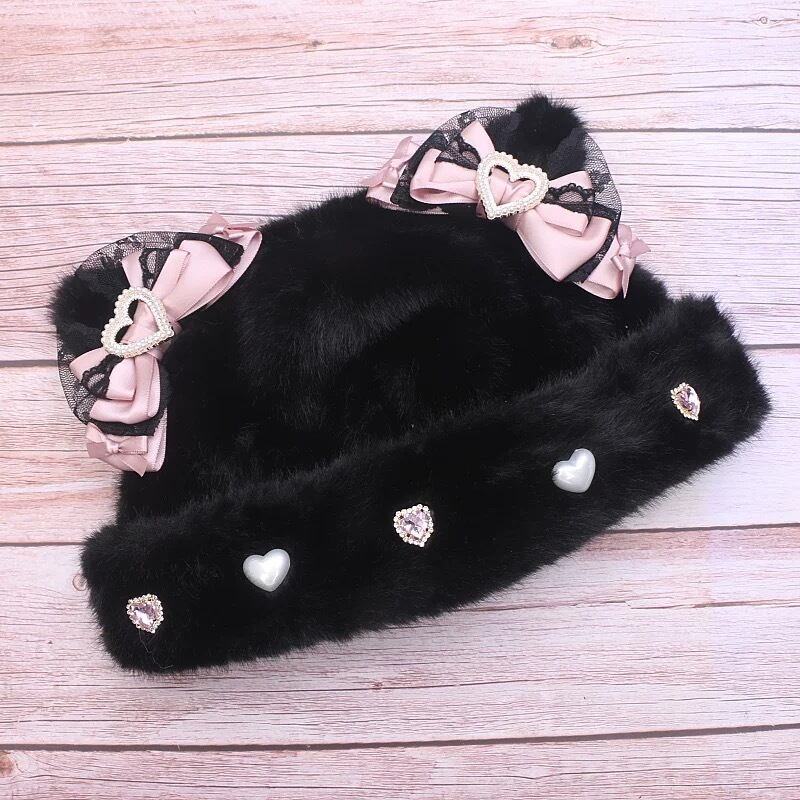 ヘアアクセサリー キャップ リボン 韓国 量産型 地雷 上品 ビジュー 帽子 レース ふわふわ