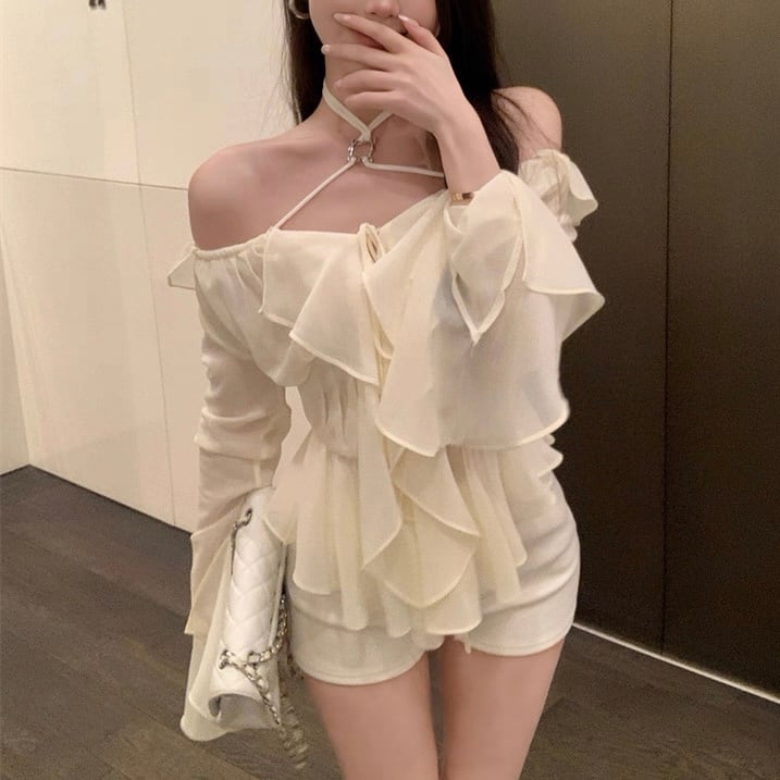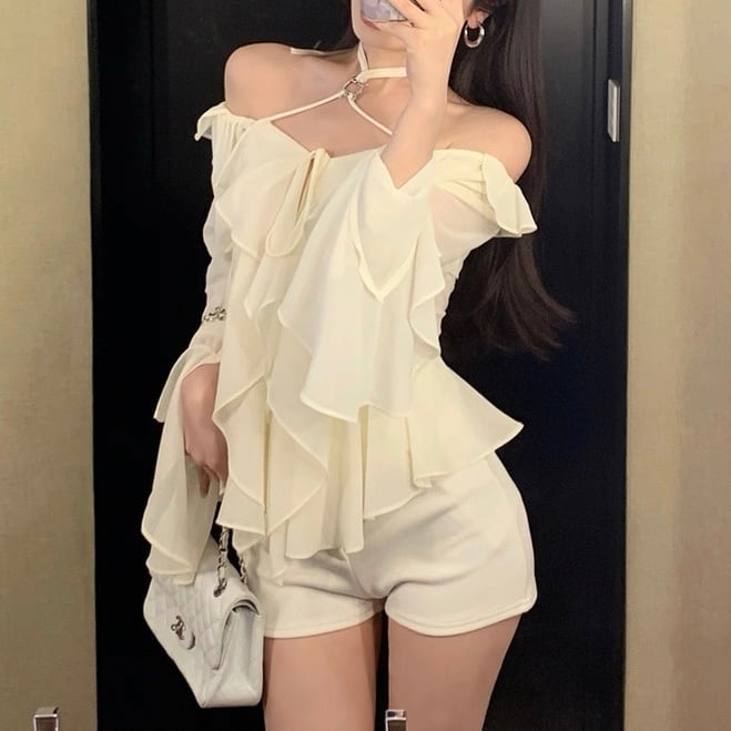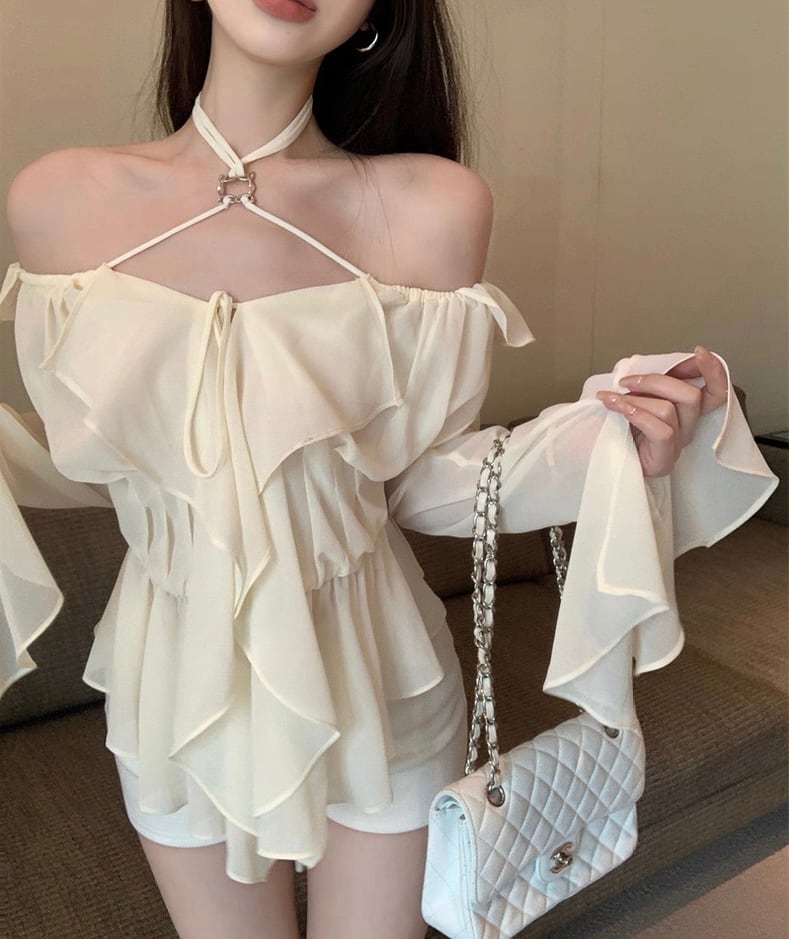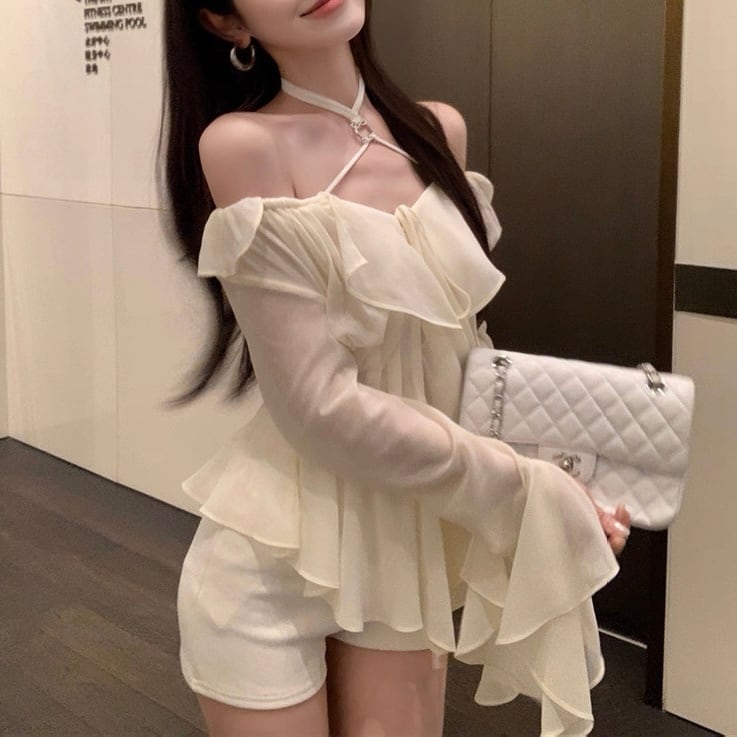 肩出し レース シフォン シャツ セクシー