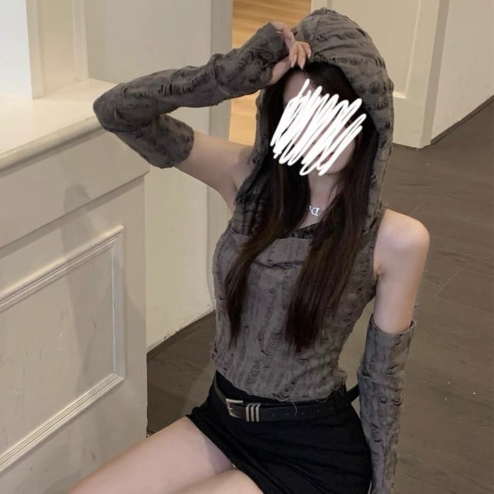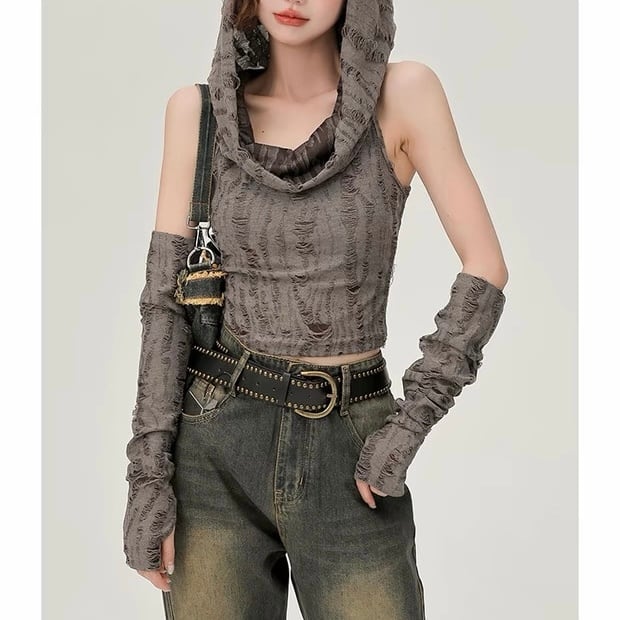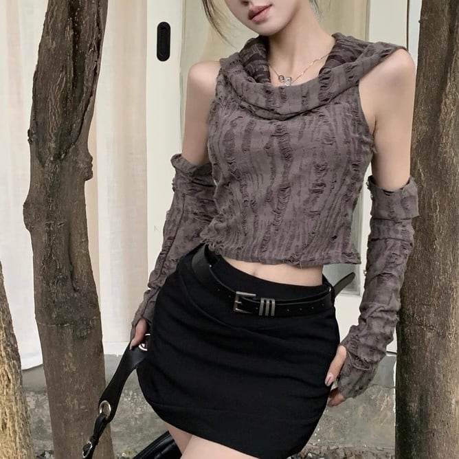アームカバー付きダメージトップス