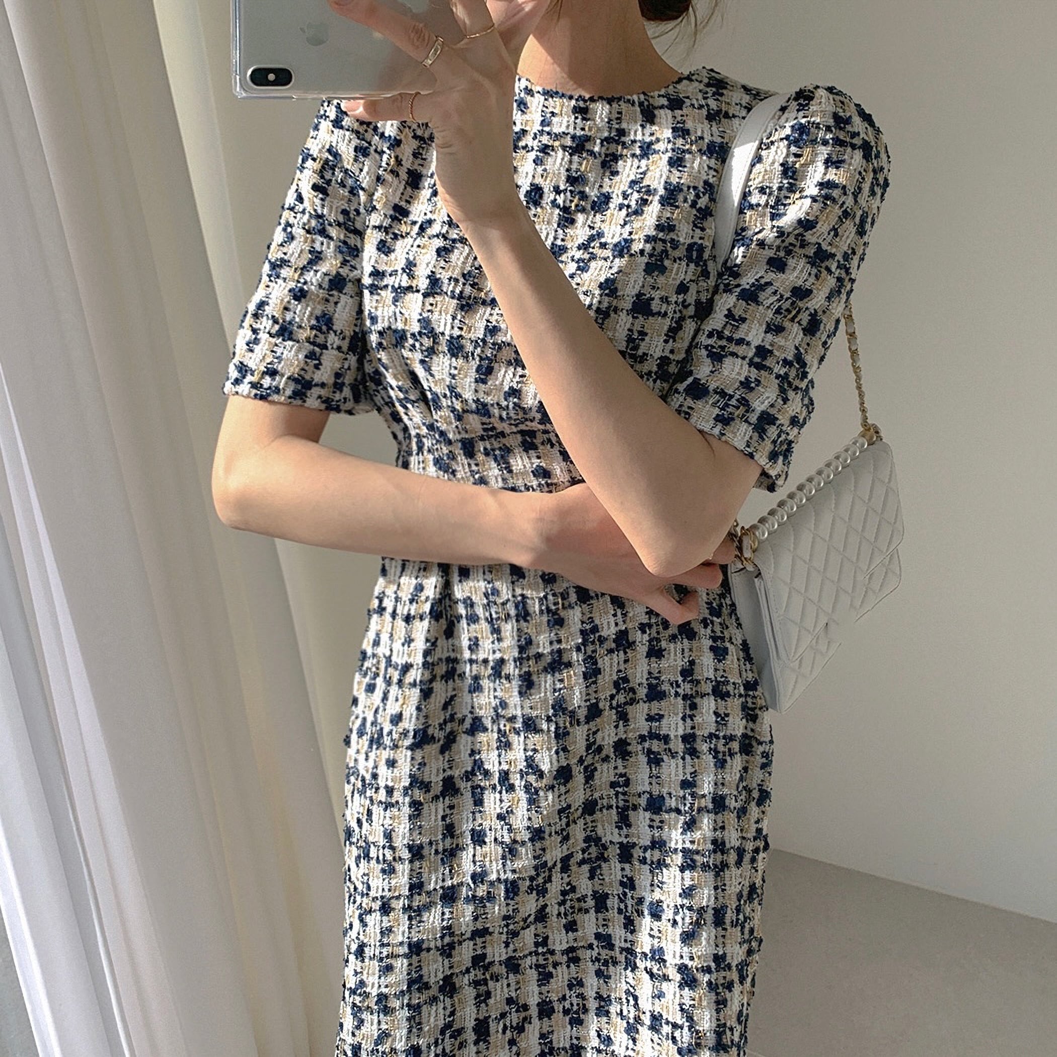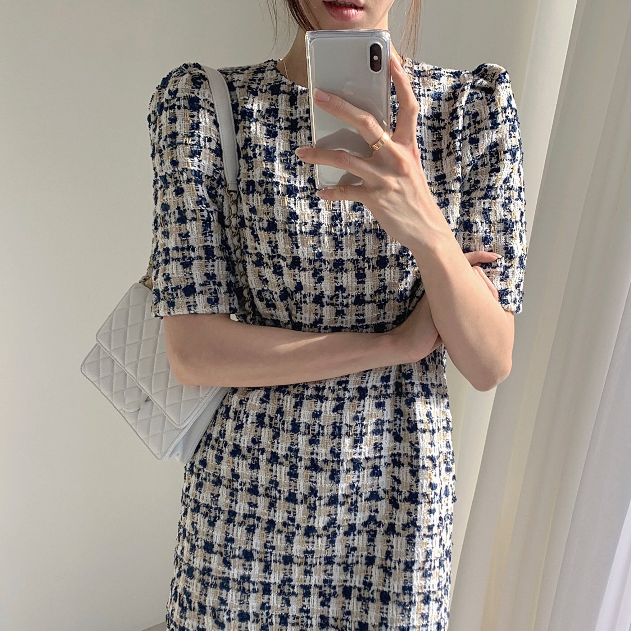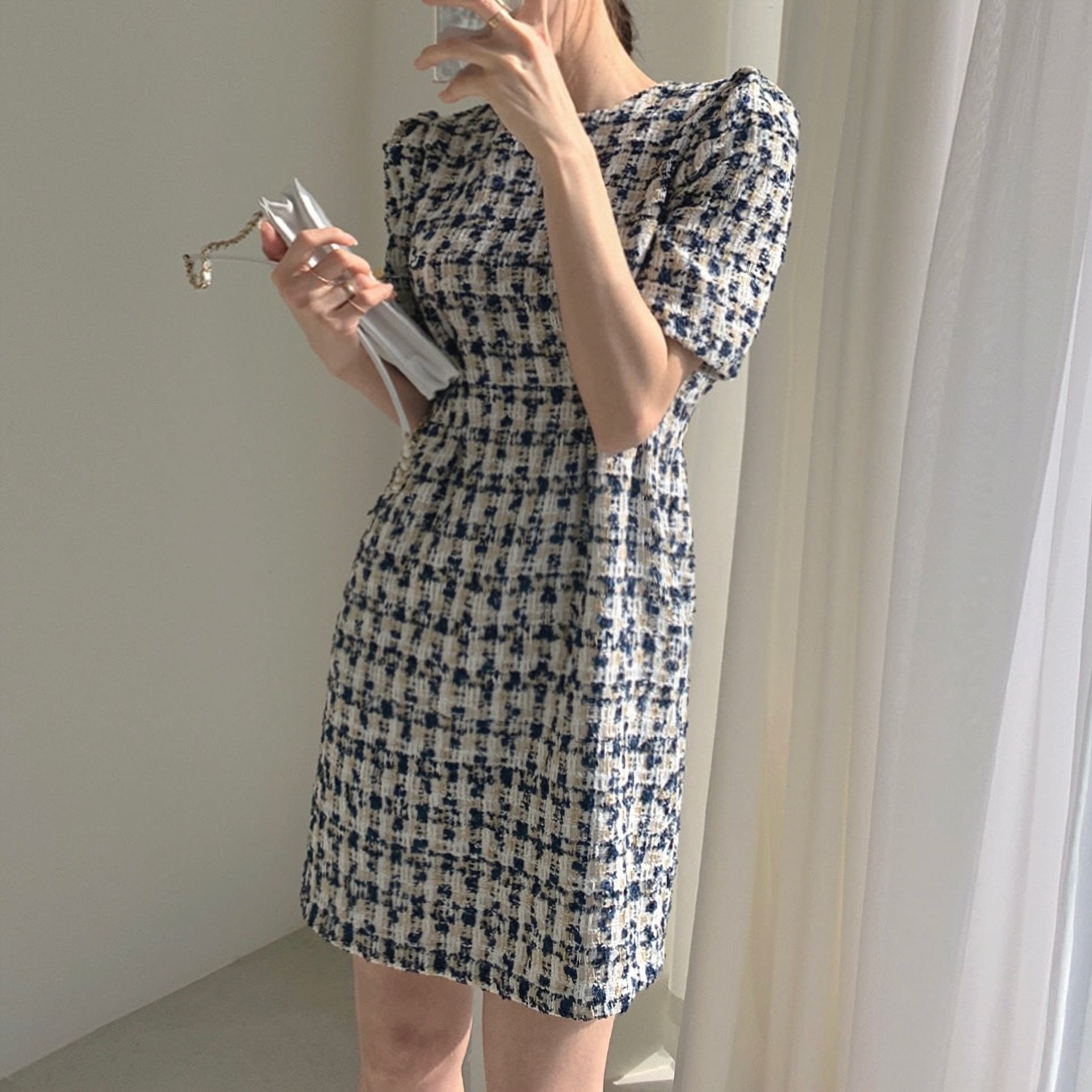 2色 半袖ツイードワンピース
