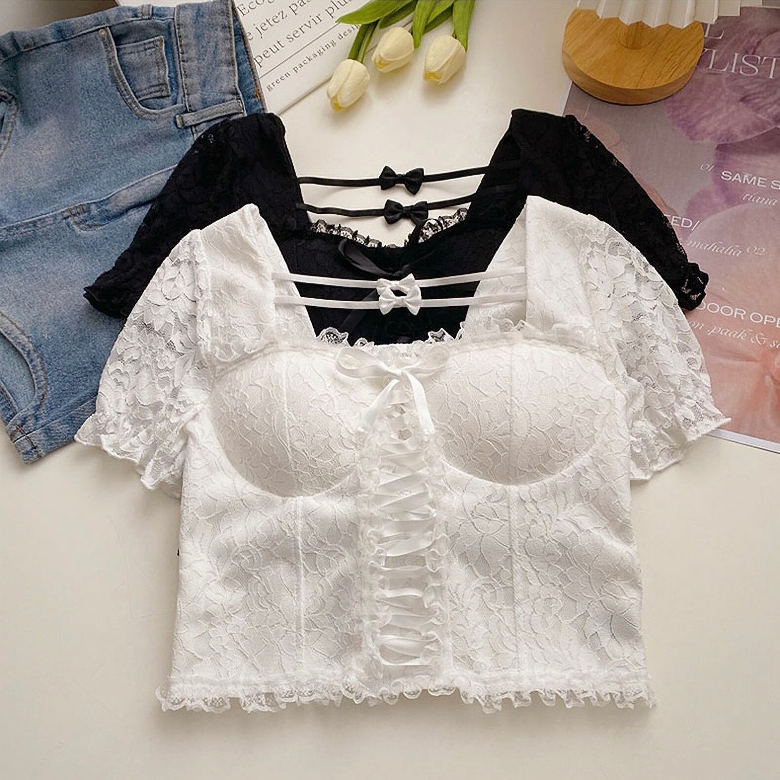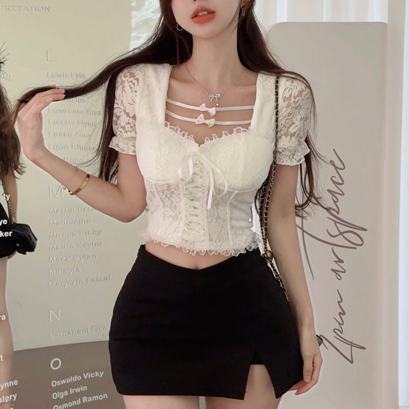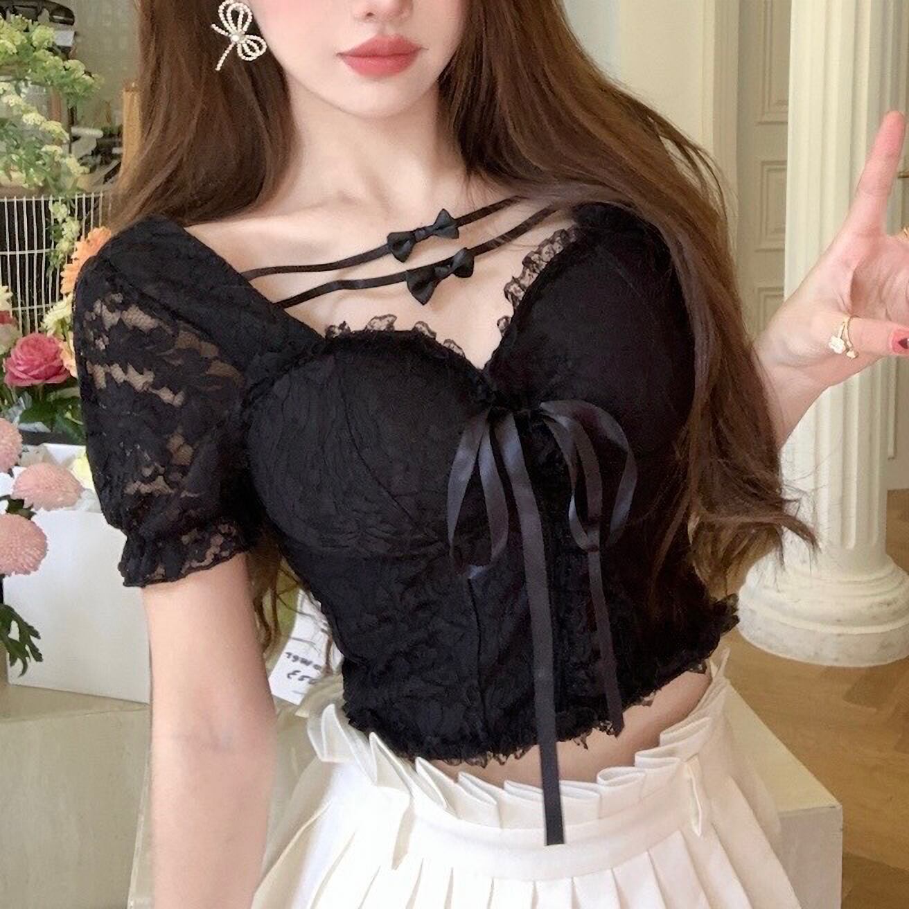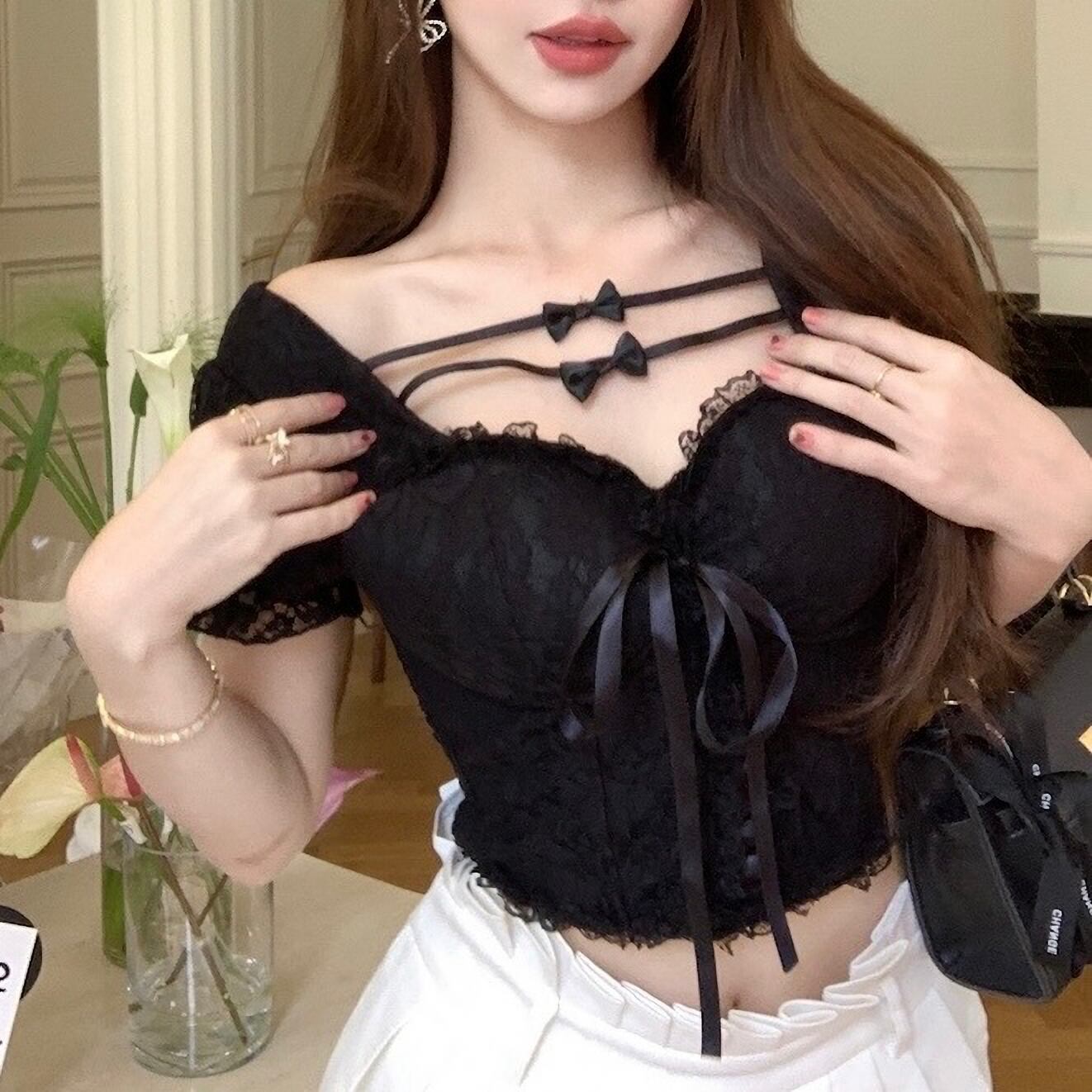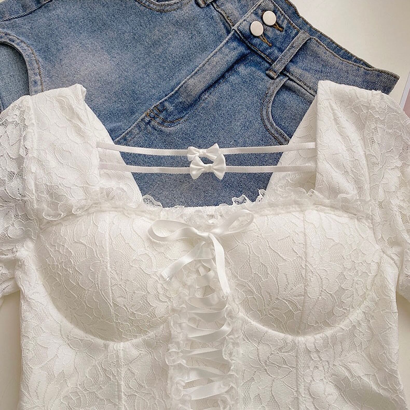 トップス 上品 韓国 量産型 地雷系 夏 半 レース