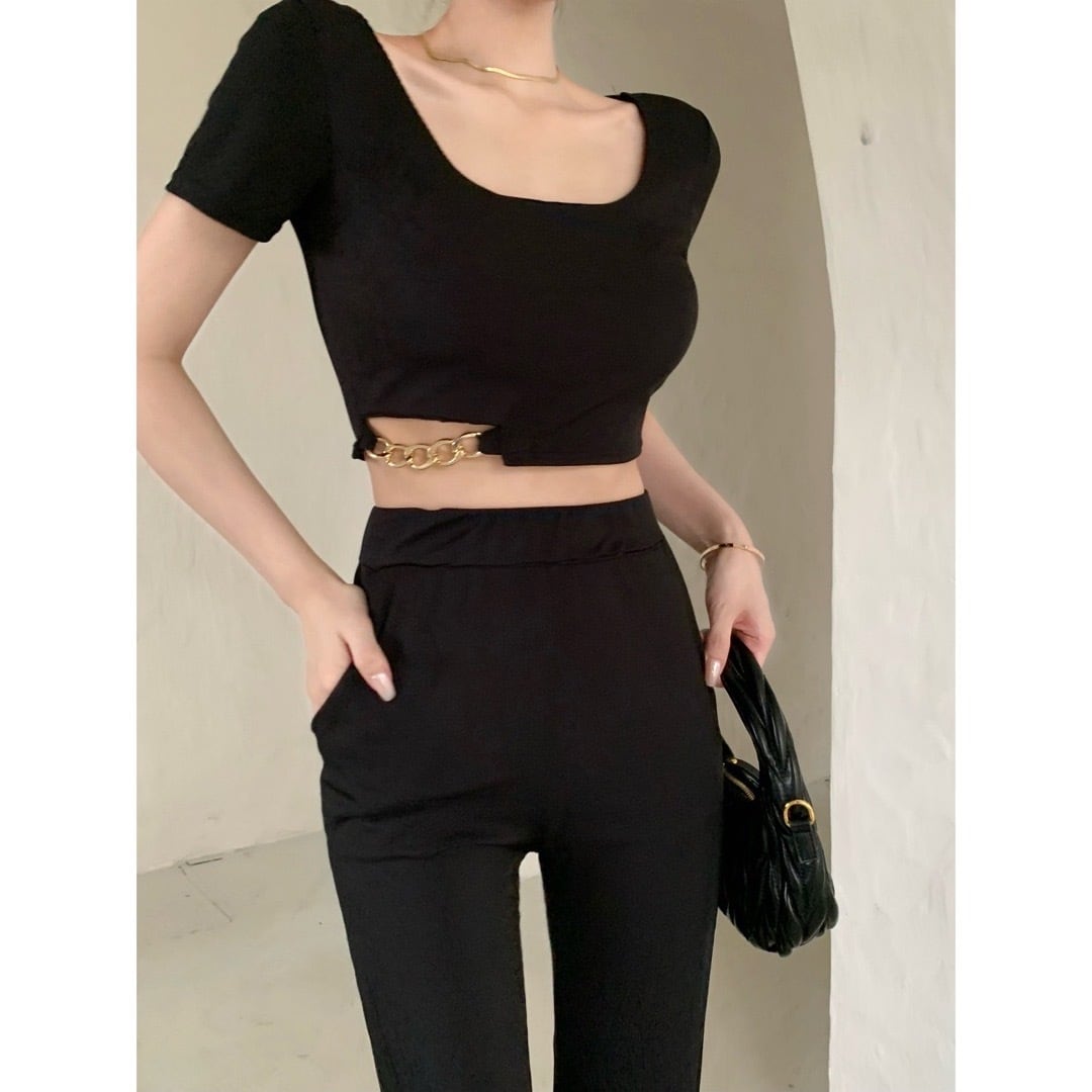 5色 チェーンミニトップス+スリットパンツset