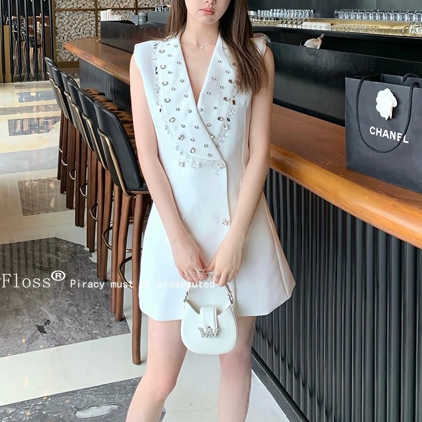 Vネック 巻きワンピース 真珠 パール ビジュー