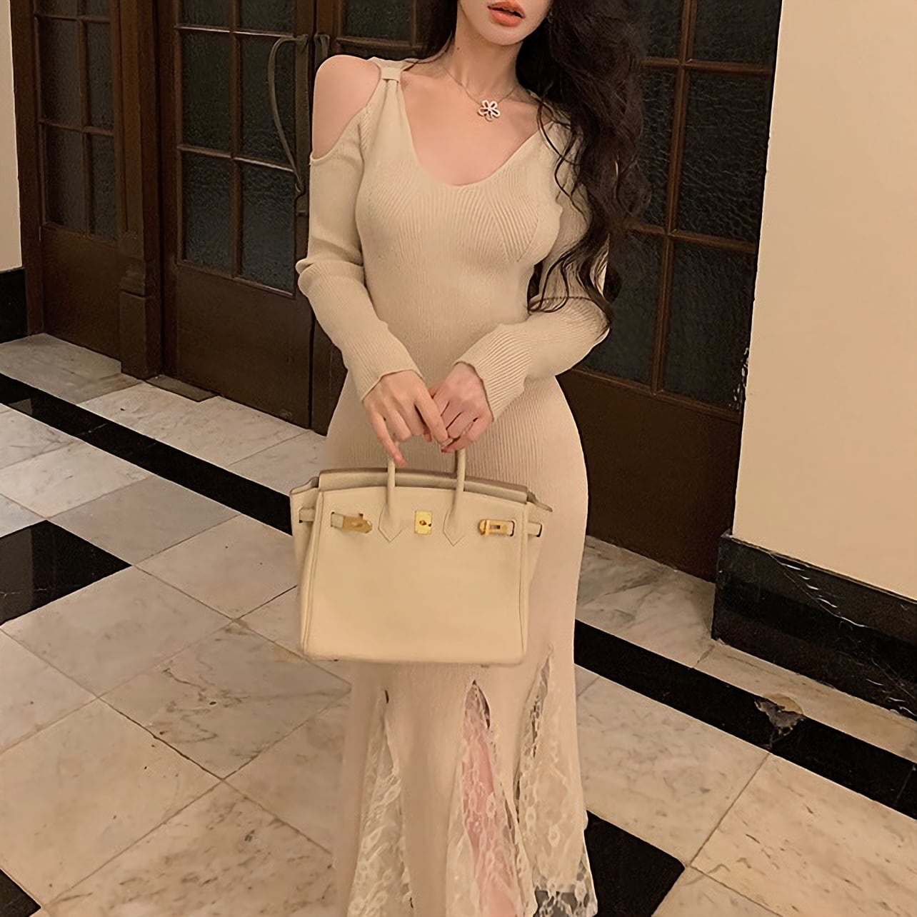 ワンピース 上品 韓国 量産型 地雷系 綺麗 秋 冬 上品 ミディ丈 ロング ロング丈 セクシー タイト レース