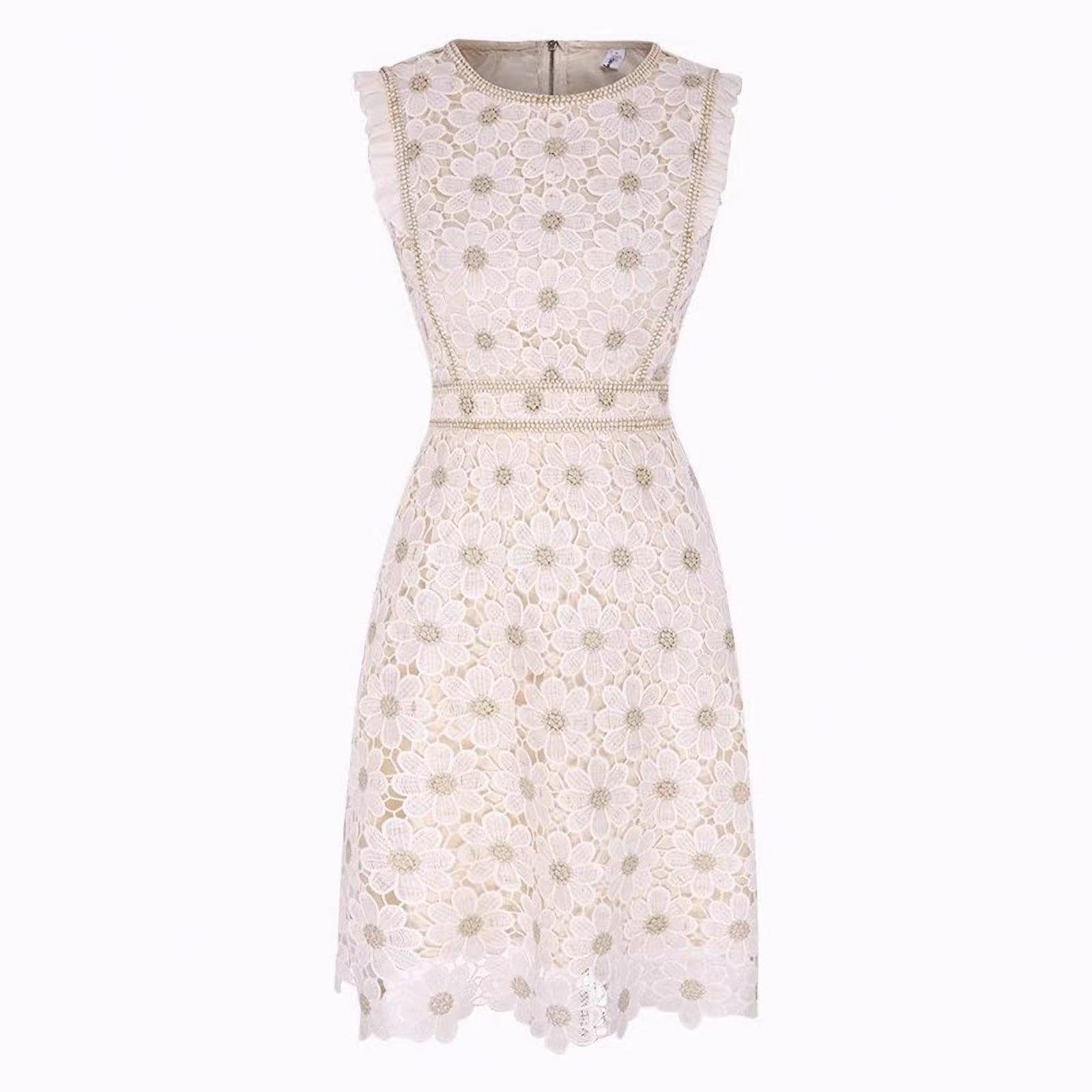 ひざ丈 ノースリーブ 花柄 ドレス フリル