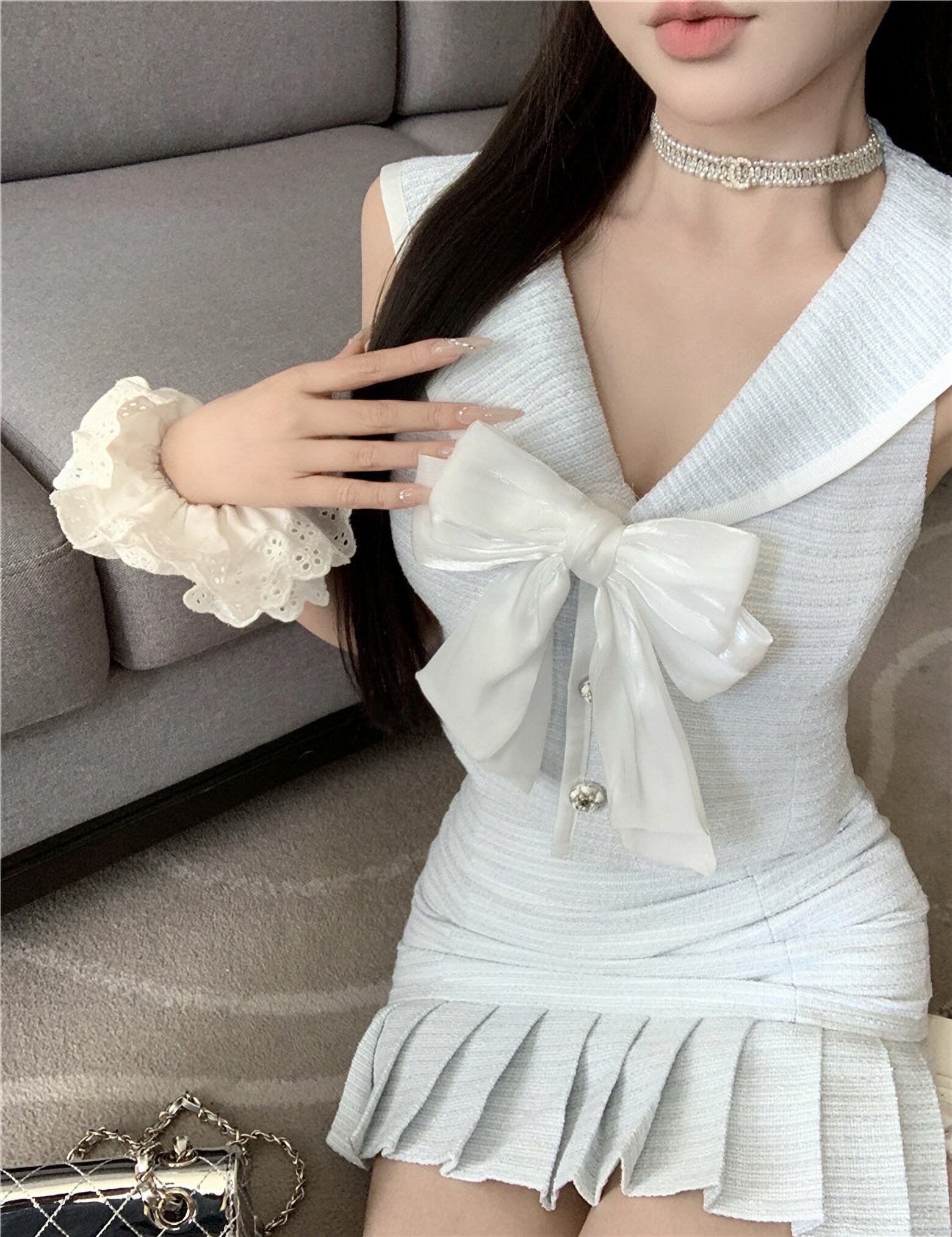 ミニ ミニ丈 ショート丈 上品 セクシー 2点セット 秋 ツイード キャミソール ノースリーブ セーラー