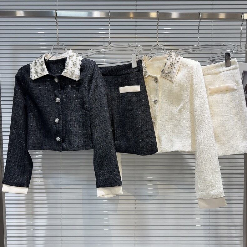 ミニ ミニ丈 ショート丈 上品 セクシー 2点セット 長袖 秋 タイト ハイウエスト ジャケット ツイード